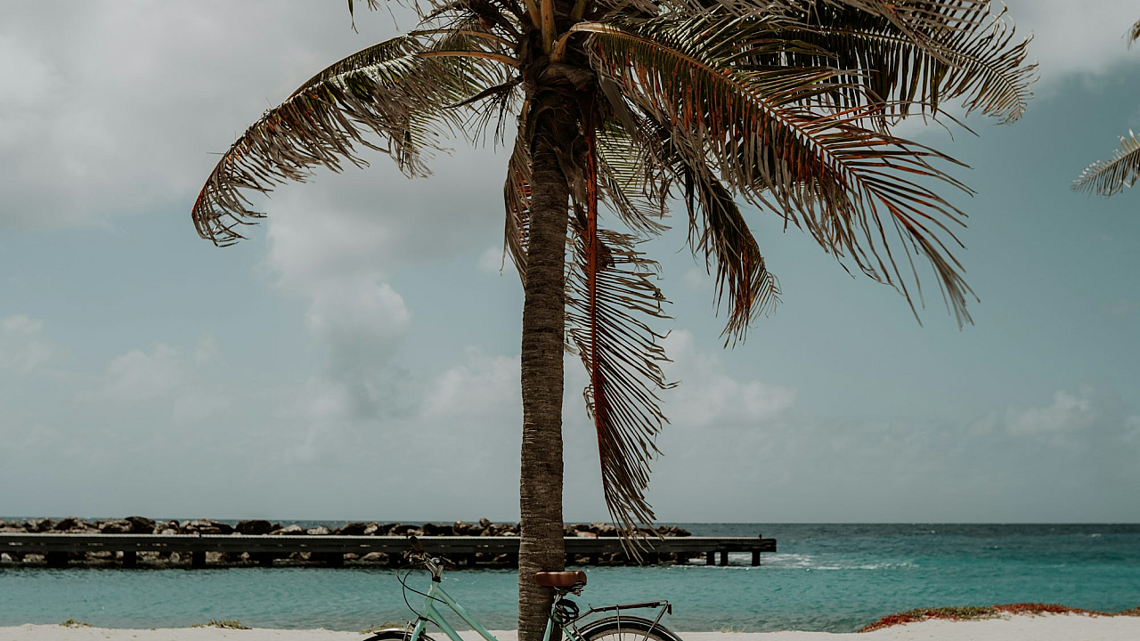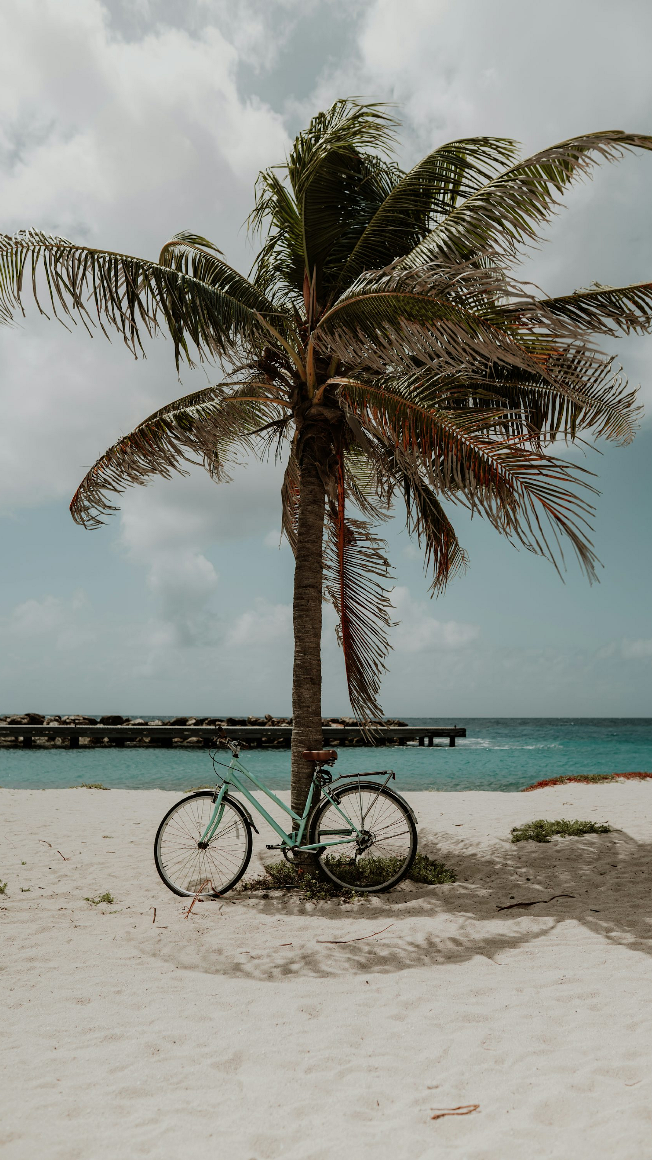blue bicycle, beach, ocean, seaside, summer, daytime, wallpaper, bicycle wallpaper, beach wallpaper, coastal