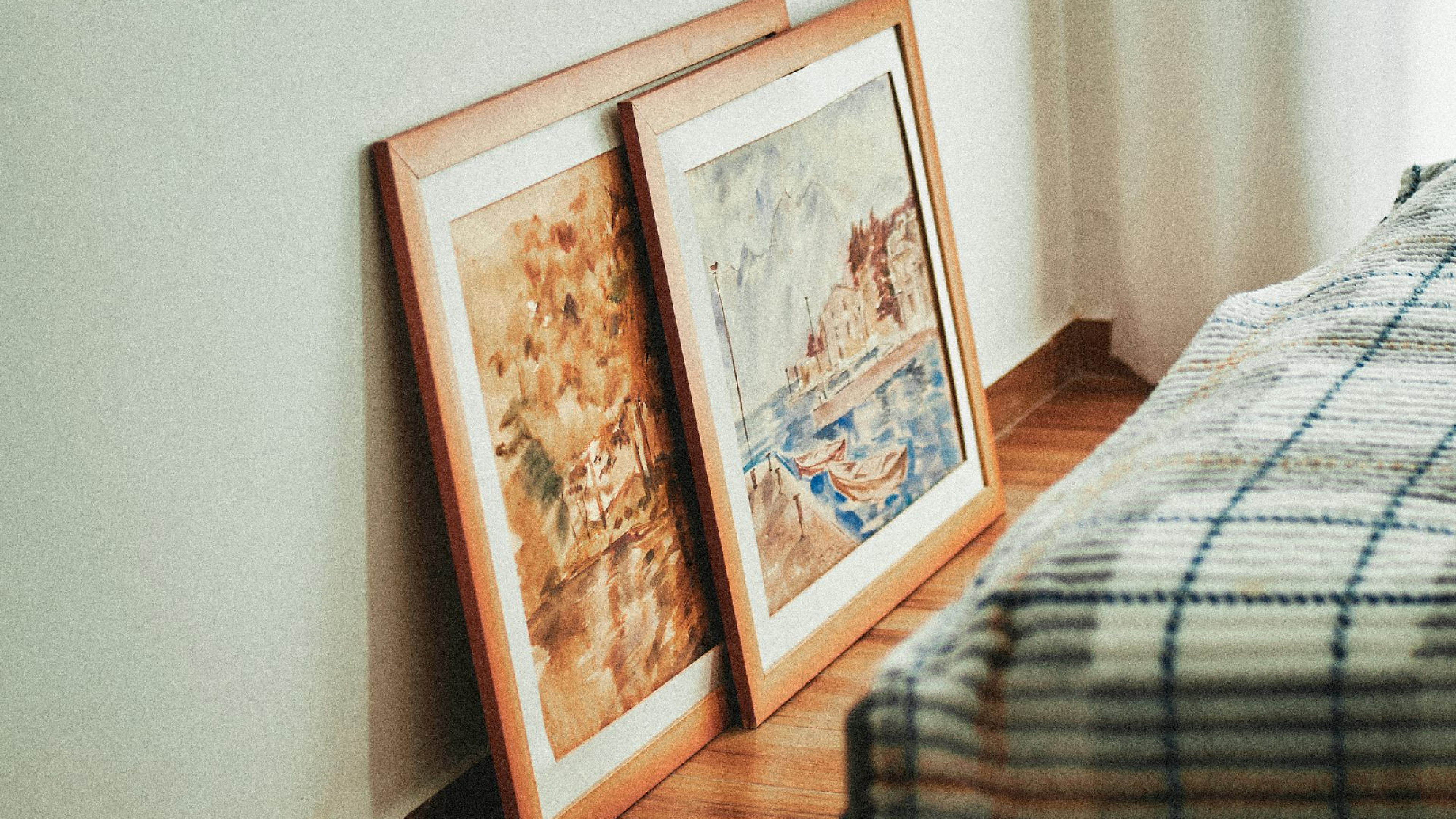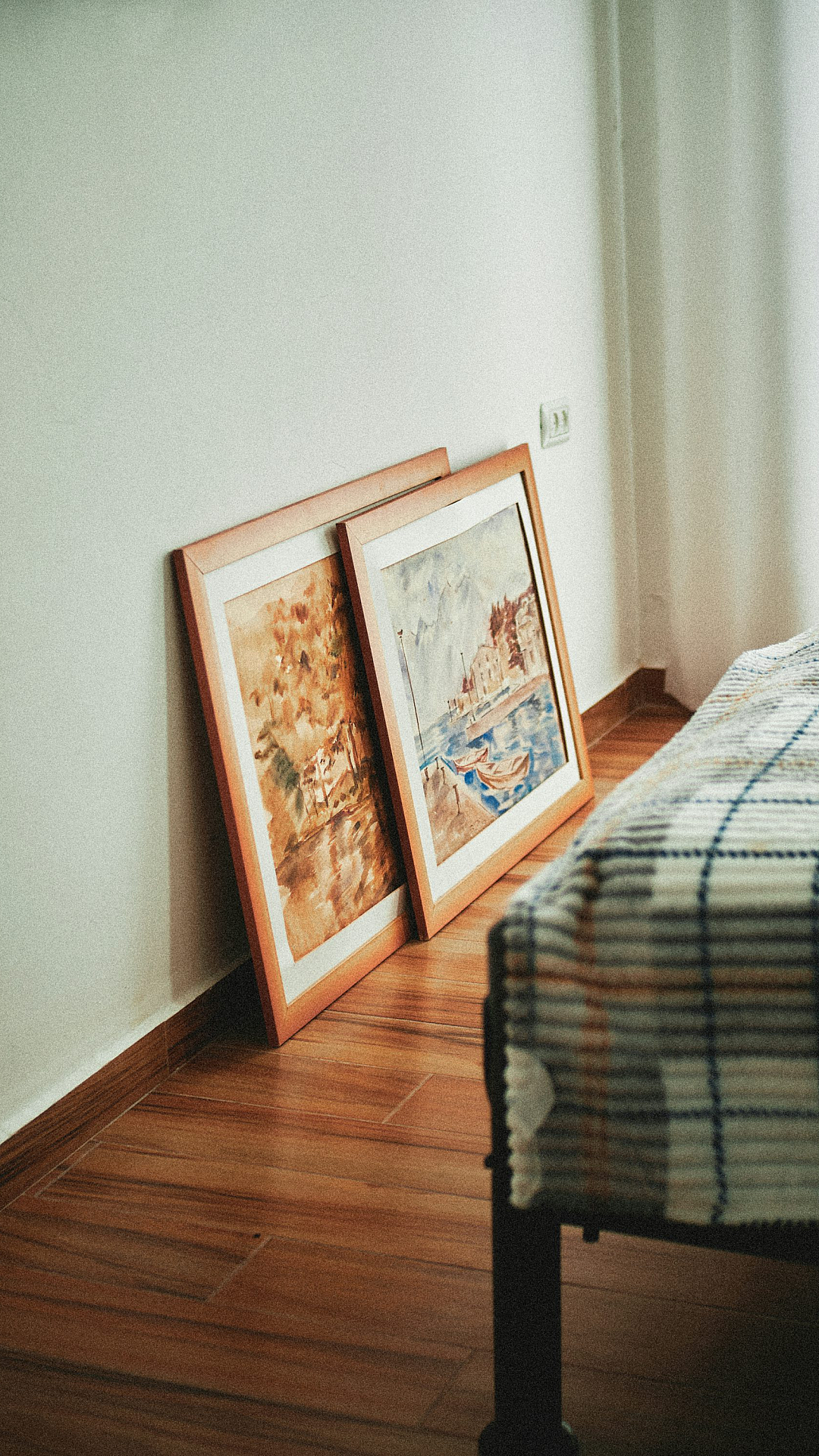 brown wooden frame, painting, white wall, wallpaper, art, rustic, vintage, home decor, minimalist, background