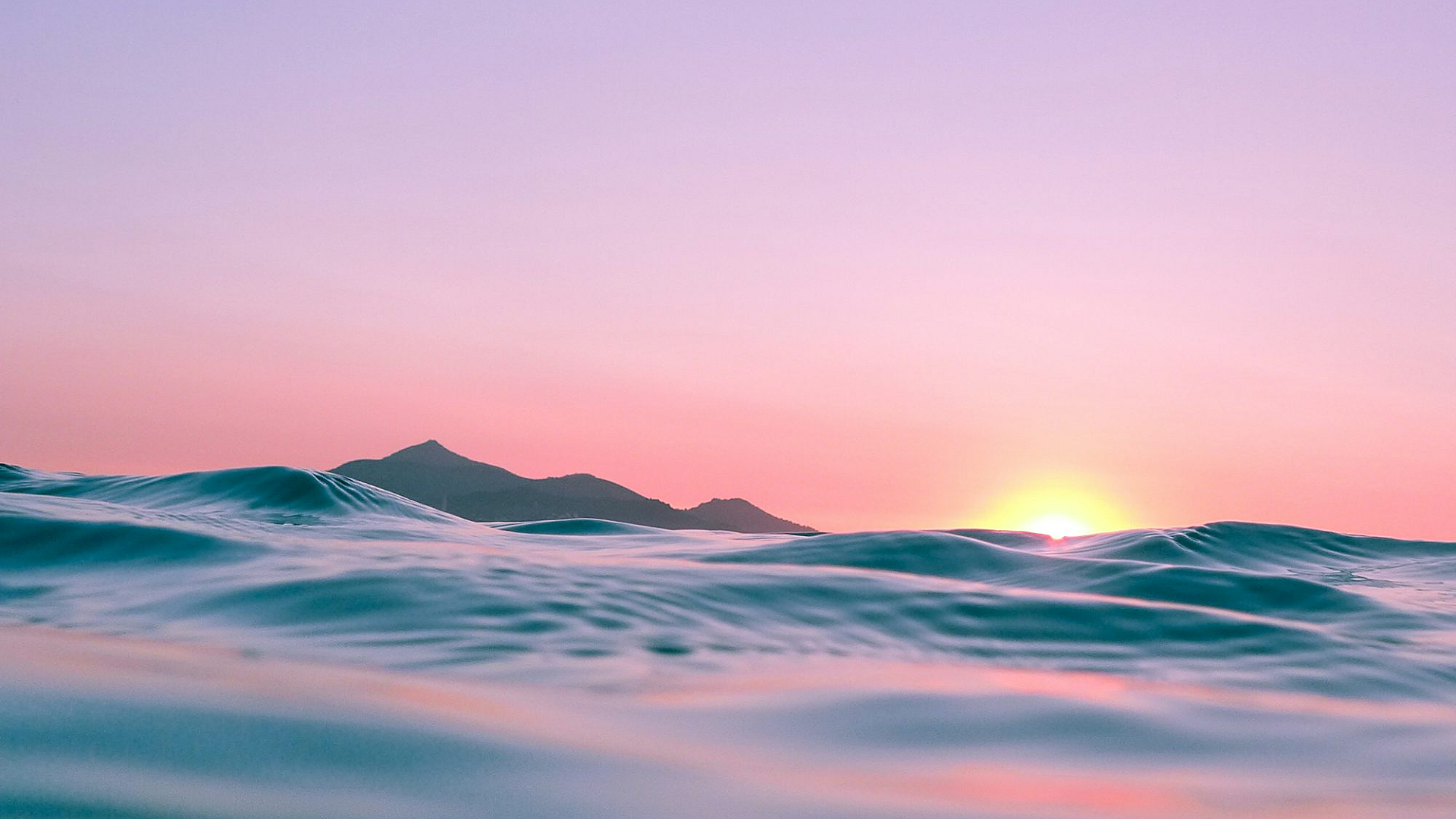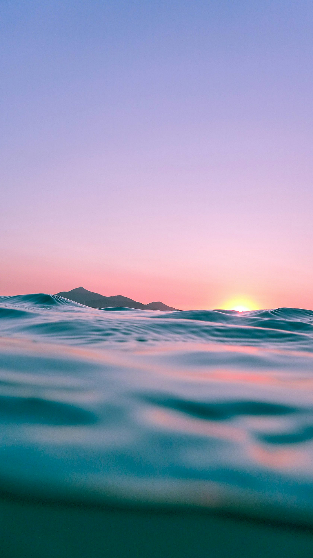 A serene image depicting a calm body of water bathed in the warm, golden light of sunset. Perfect for a peaceful desktop background.