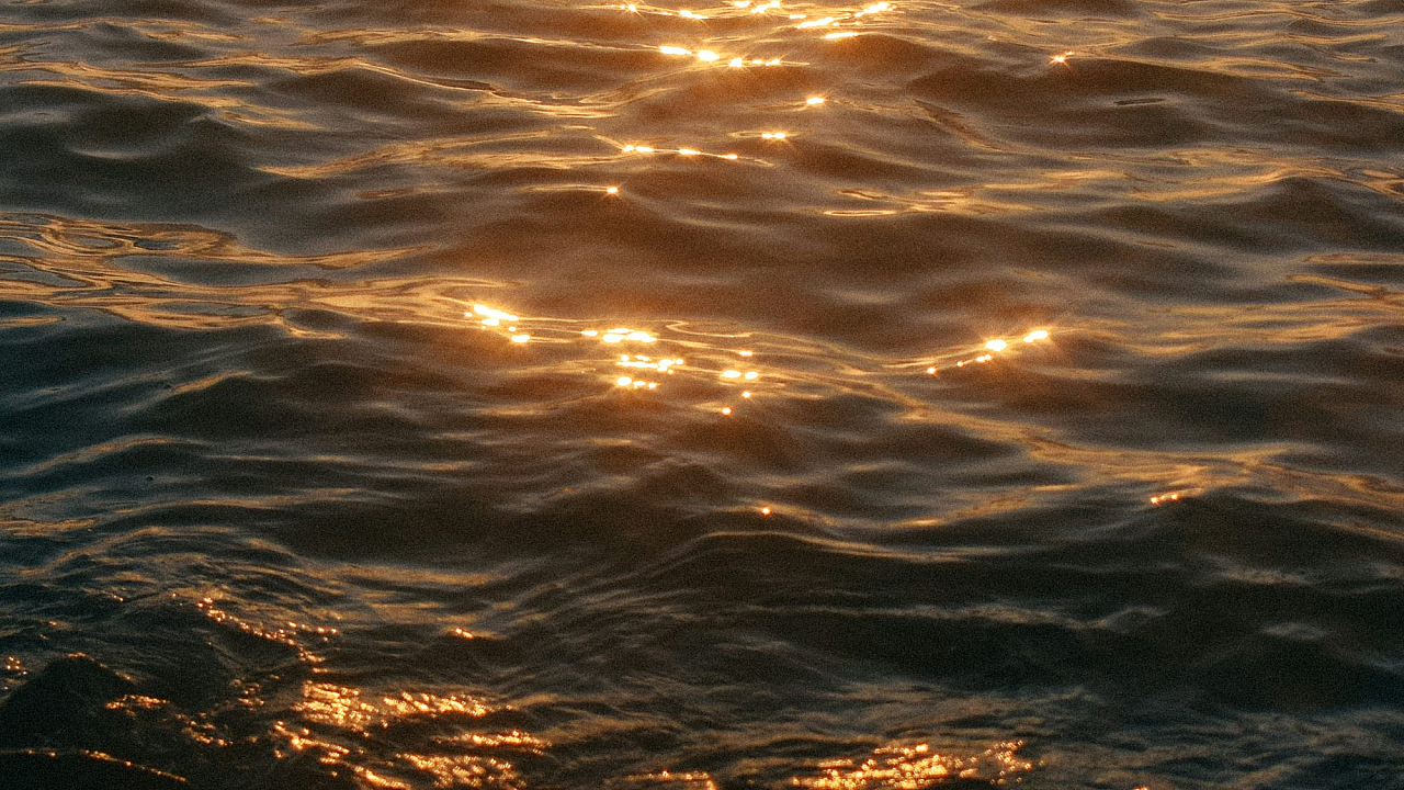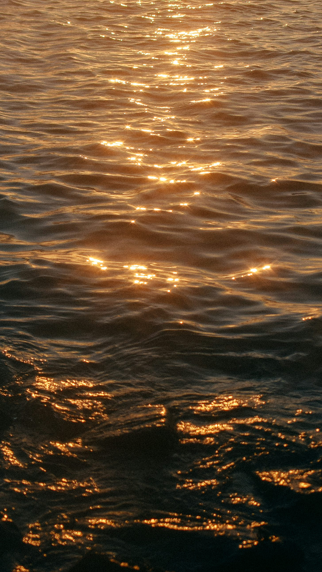 Experience tranquility with this stunning wallpaper depicting a calm sea bathed in the warm, golden light of the golden hour. Perfect for a serene desktop background.