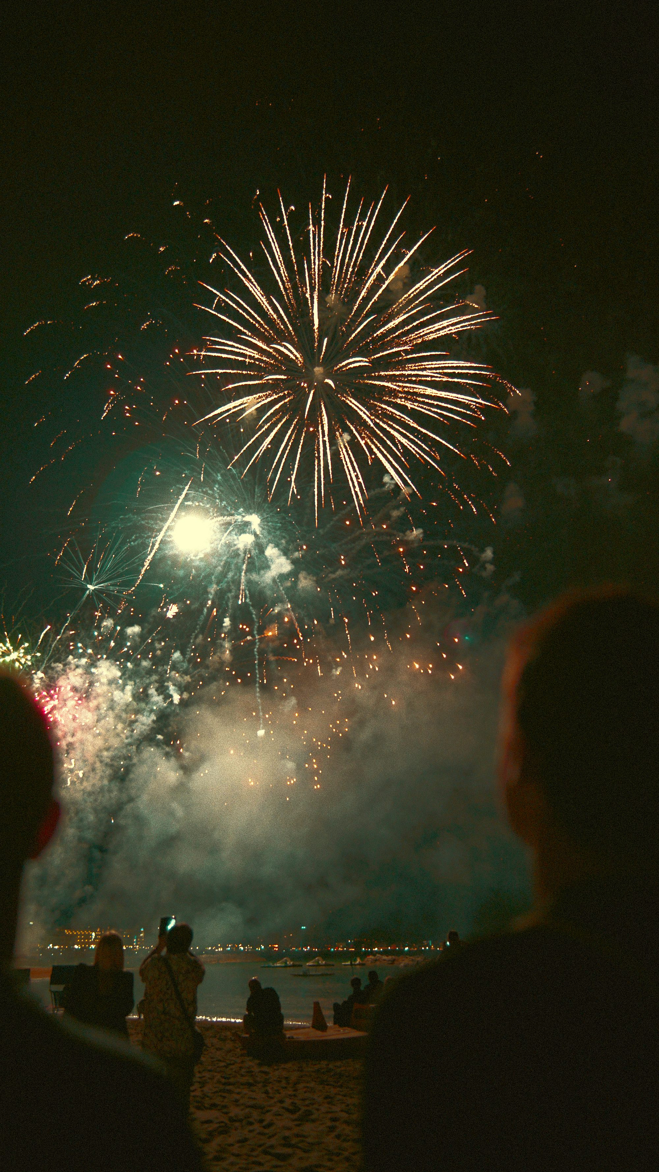 A breathtaking scene of people mesmerized by a vibrant fireworks display, captured in stunning detail for your desktop or mobile background.