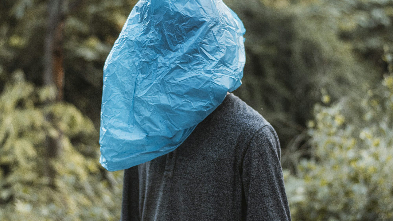 person, blue, plastic bag, abstract, surreal, mystery, art, wallpaper, background, minimalism