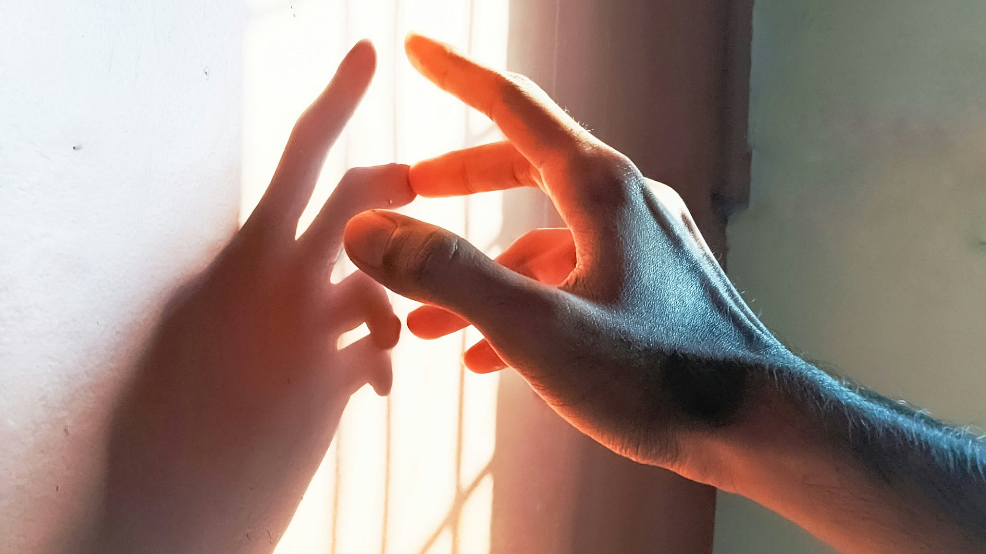 A minimalist wallpaper featuring a close-up of a person’s left hand making the peace sign. Simple, clean, and symbolic.