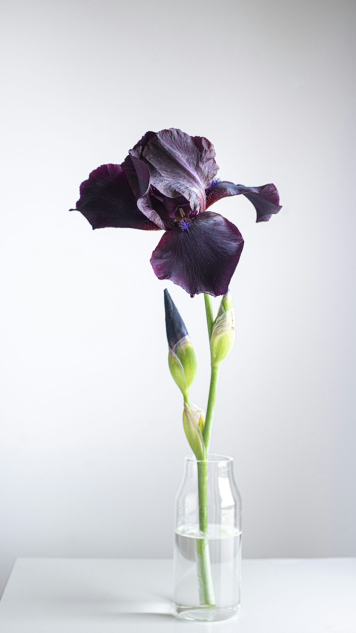 purple flower, glass vase, clear vase, floral wallpaper, purple wallpaper, flower wallpaper, nature wallpaper, minimalist wallpaper, simple wallpaper, botanical wallpaper