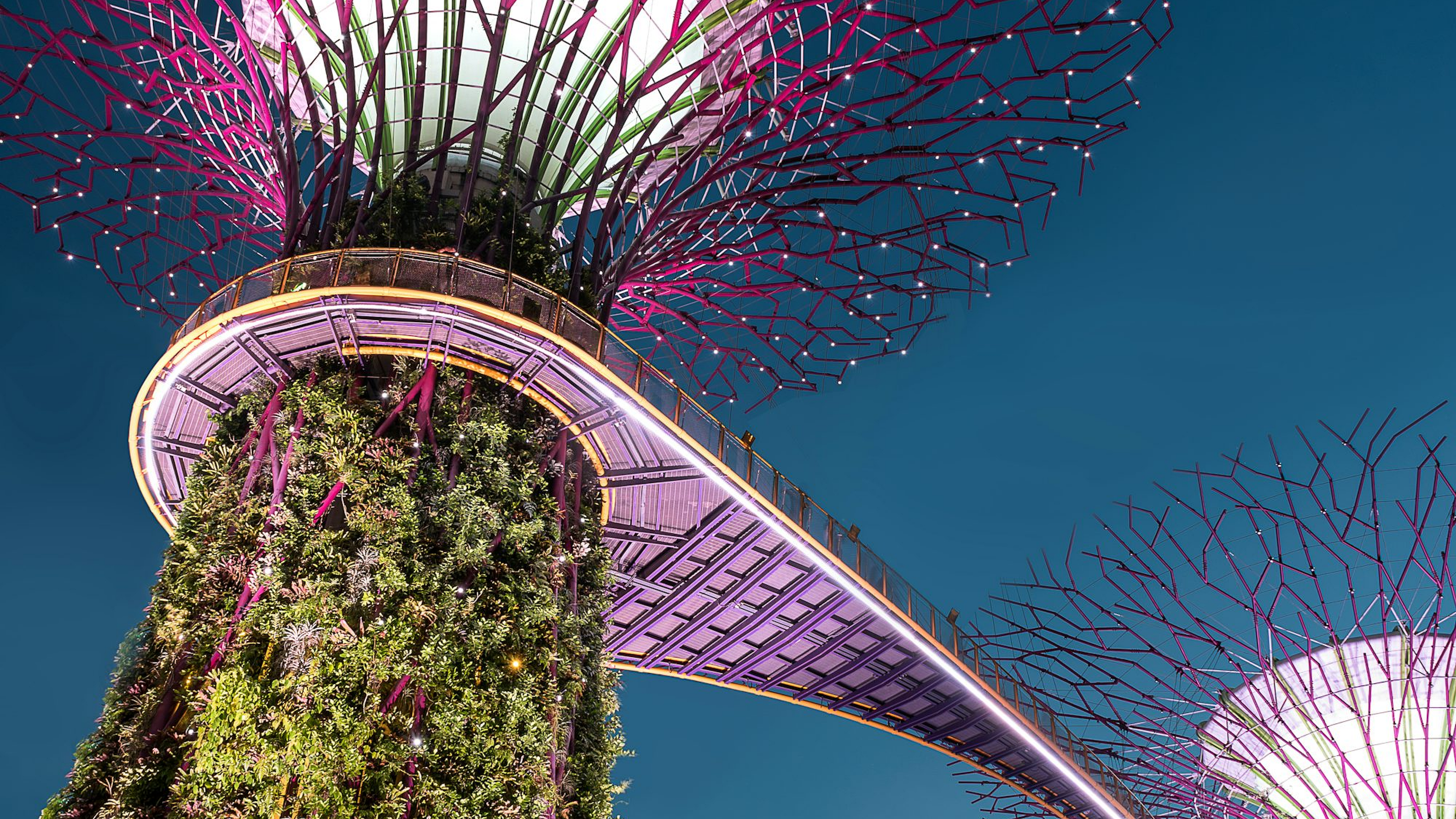 purple tree, Singapore, landmark, night, lights, wallpaper, cityscape, tree, purple, scenic