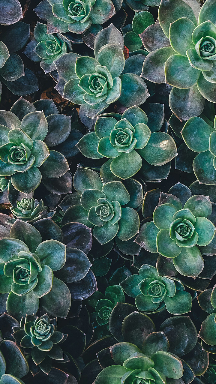 A stunning top-down view of lush green succulents, perfect as a calming and refreshing wallpaper for your devices.