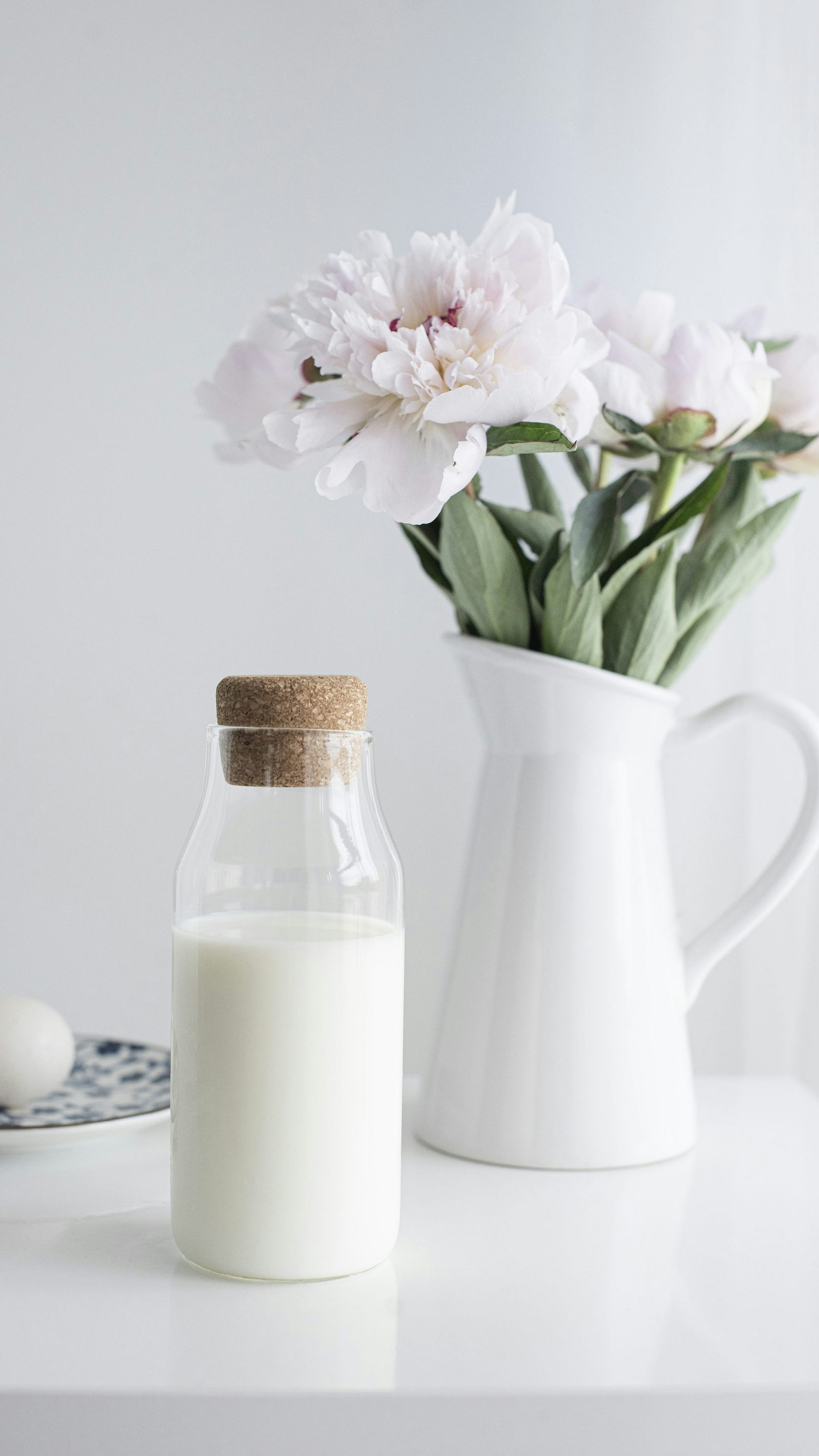 white flowers, pink flowers, ceramic pitcher, white pitcher, floral wallpaper, flower wallpaper, pink and white, spring wallpaper, delicate wallpaper, botanical wallpaper