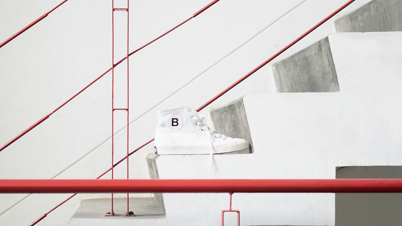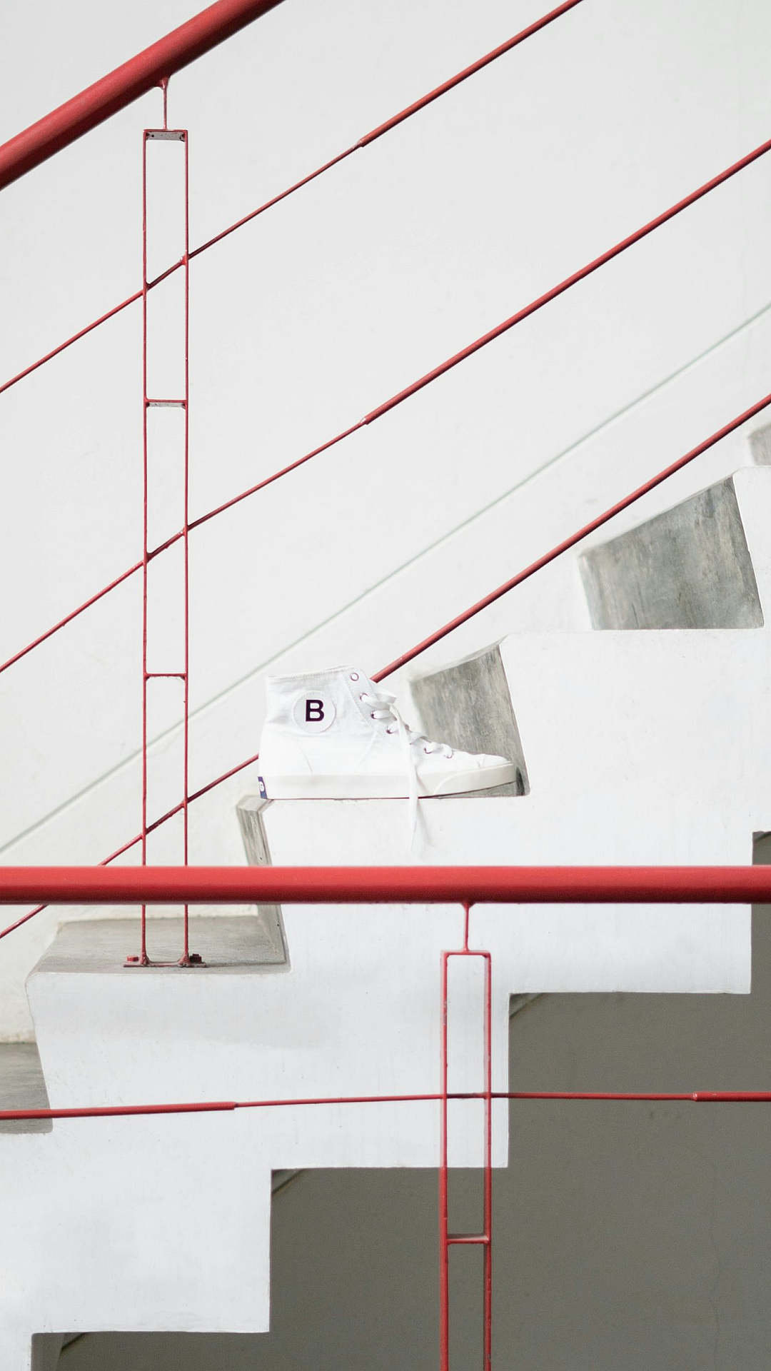 This wallpaper features a striking image of a modern building with a bold red and white concrete facade. The clean lines and strong color contrast make it a visually impactful choice.