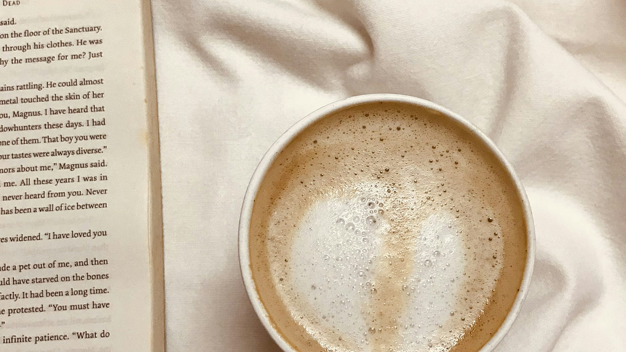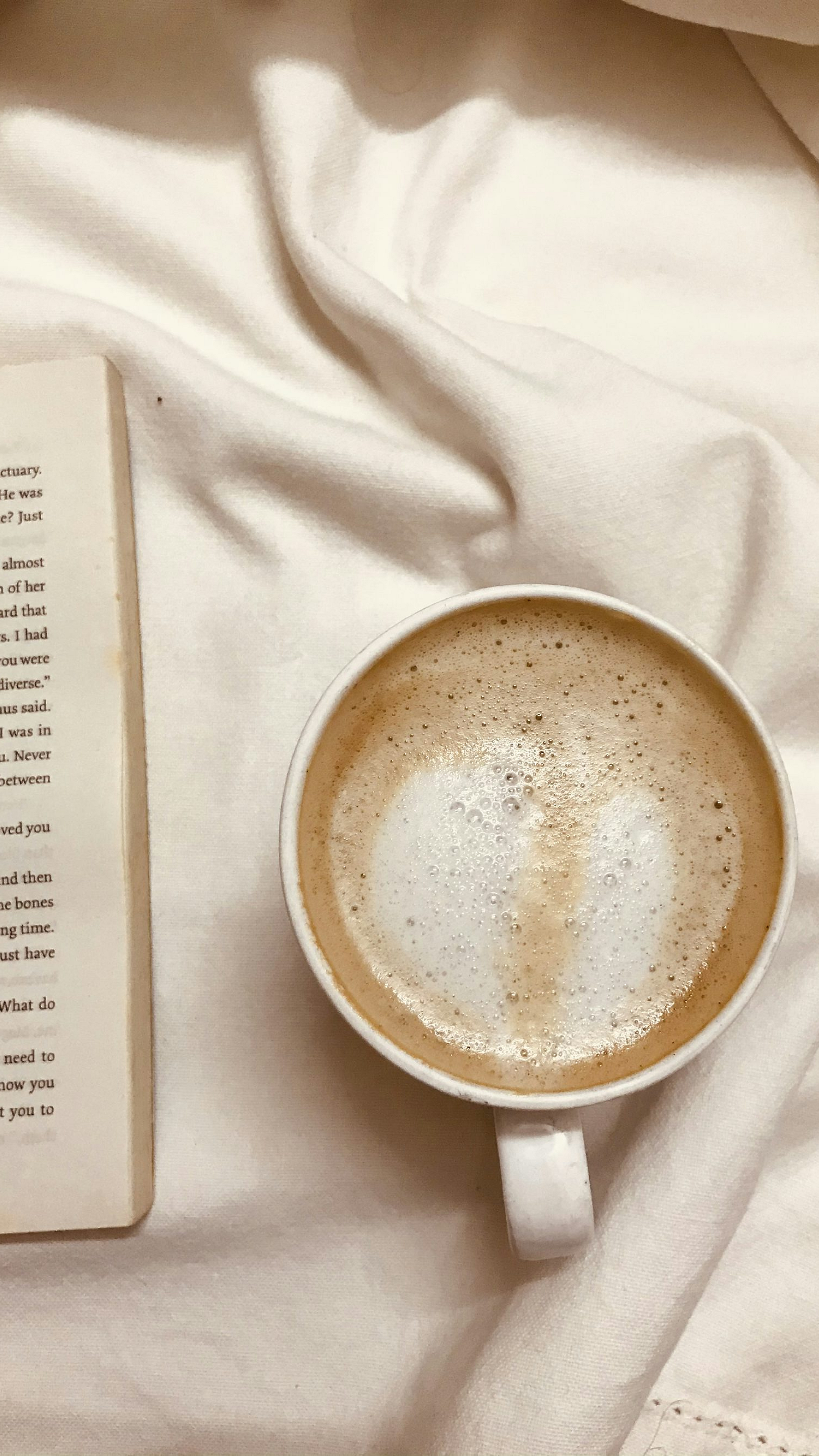 A minimalist wallpaper featuring a white ceramic mug resting on a white textile. The clean lines and simple composition create a serene and calming atmosphere.