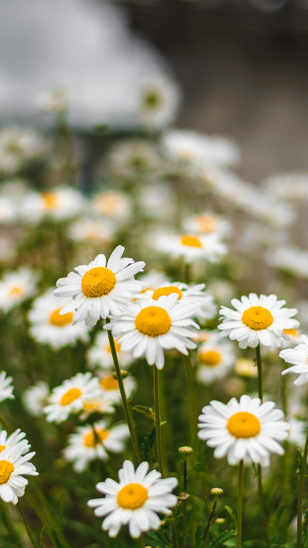 A stunning wallpaper featuring a field of white daisies in full bloom. Perfect for a bright and cheerful desktop or mobile background.