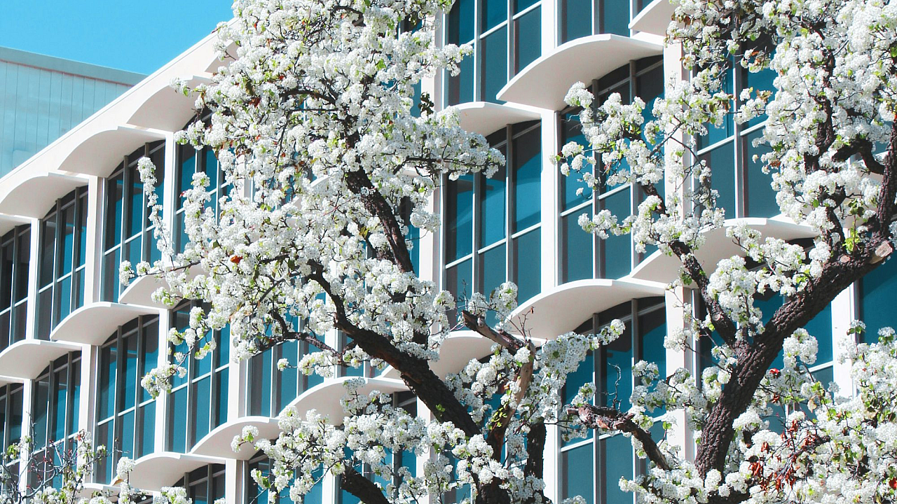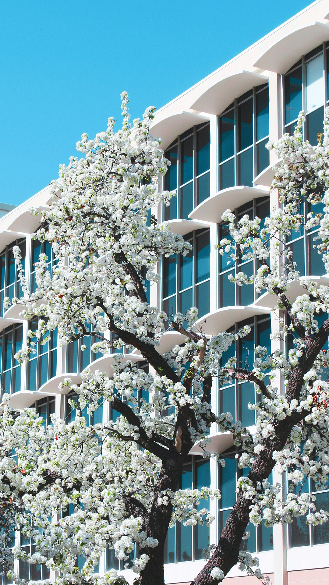 white flowers, petals, building, wallpaper, floral, architecture, nature, background, urban nature, spring